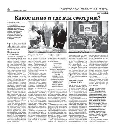 Статья в издании «Регион 64», выпуск № 64 от 14 мая 2019 г.