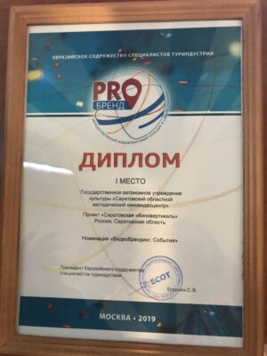 Видеоролик Саратовского областного методического киновидеоцентра «Все о саратовской «Киновертикали» стал победителем I международного маркетингового конкурса в сфере туризма «PROбренд» в номинации «Видеобрендинг. События». Церемония награждения состоялась сегодня, 26 июня, в Московском доме национальностей.