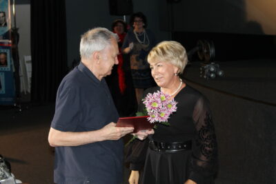 Директор Саратовского областного методического киновидеоцентра Ирина Бережная и профессор Саратовской консерватории Эдуард Гавриленков наградили победителей областного конкурса «Лучший Дом кино» и фестиваля-конкурса исполнителей музыкальных произведений из отечественных кинофильмов «Город кино».