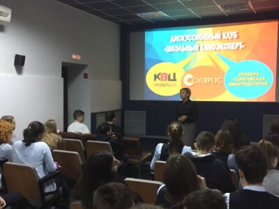 Напомним, что дискуссионный клуб «Школьный киноэксперт» начал свою работу осенью 2019 года по инициативе Саратовского областного киновидеоцентра и общественной организации содействия развитию кинематографа «Саратовская кинотраектория» и поддержке руководства лицея «Солярис».