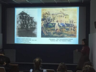 Лектор представила слушателям творческий путь художника через его знаменитые произведения, некоторые из которых выставляются в Радищевском музее: «Осенние мотивы», «Эйфелева башня», «Водоём», «Призраки», «Реквием».