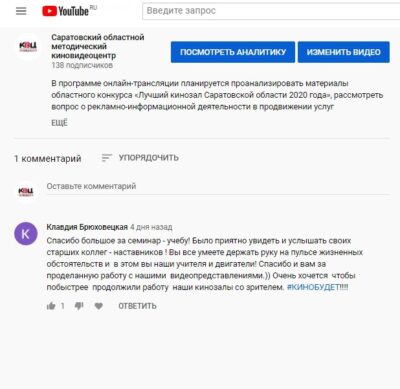 Напомним, записи обеих частей семинара можно посмотреть на официальном ютуб-канале областного киновидеоцентра до 1 июня 2020 года.