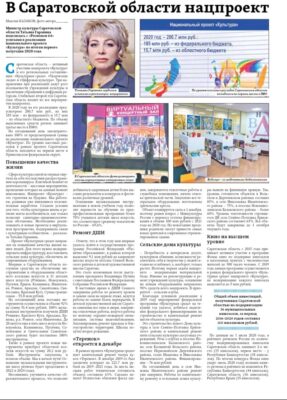 Подробнее о реализации Национального проекта «Культура» в статье «Регион 64» № 61 от 18 августа 2020 года.