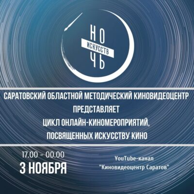 В «НОЧЬ ИСКУССТВ» САРАТОВСКИЙ ОБЛАСТНОЙ МЕТОДИЧЕСКИЙ КИНОВИДЕОЦЕНТР ПРЕДСТАВИТ СПЕЦИАЛЬНУЮ ОНЛАЙН-КИНОПРОГРАММУ