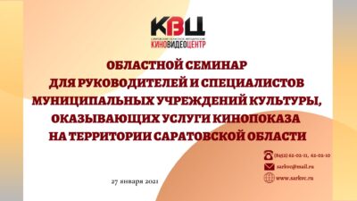 27 января 2021 года в 10.00 по местному времени Саратовский областной методический киновидеоцентр проведет семинар для руководителей и специалистов муниципальных модернизированных кинозалов, Домов кино и киновидеоцентров.