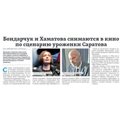 Сегодня в материале Саратовской областной газеты «Регион 64» №23 от 30 марта 2021 года опубликована статья о съемках нового полнометражного фильма «Подвиг» уроженки Саратова, сценариста, режиссёра, автора и исполнителя песен Анастасии Пальчиковой.