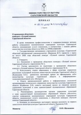 Приказ о проведении областного конкурса Лучший кинозал Саратовской области в 2026 году