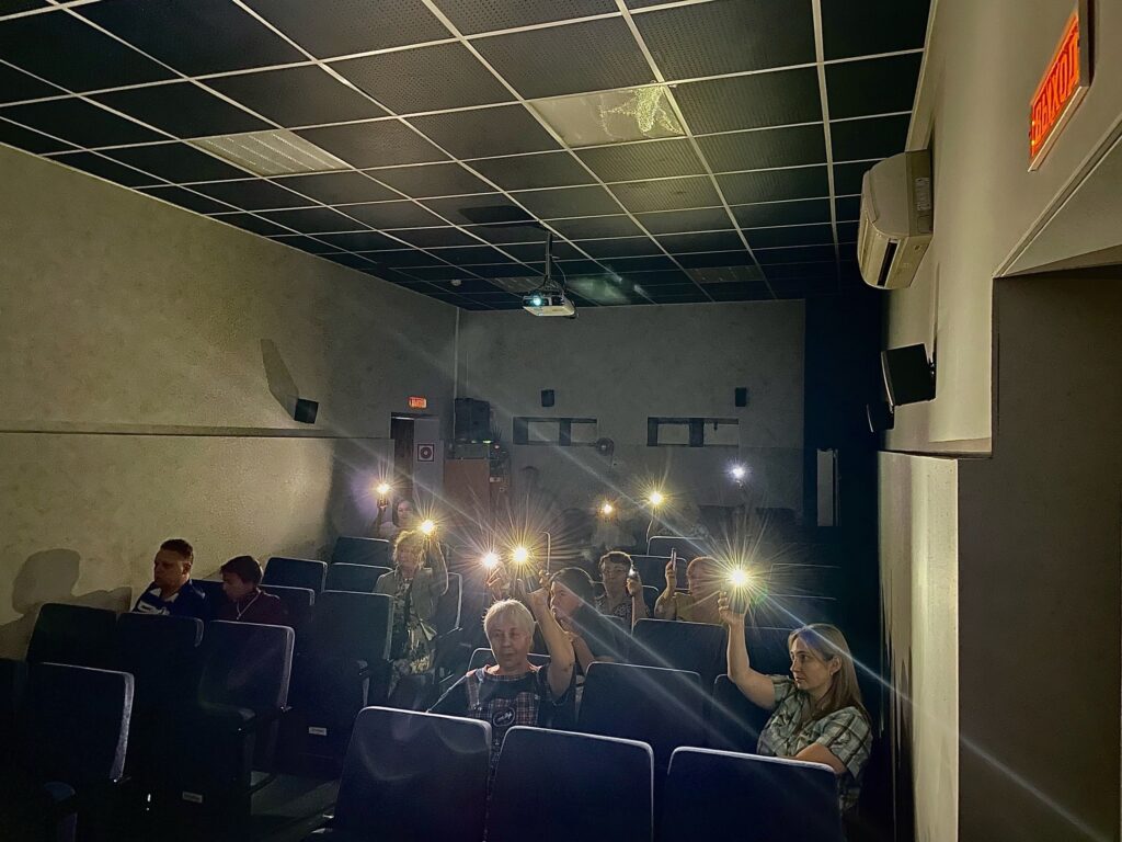 После показа зрители голосовали за понравившийся фильм фонариками телефонов.