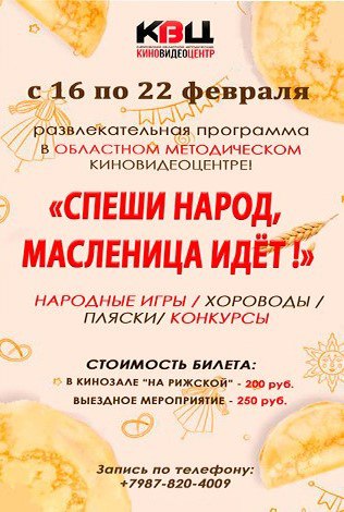 ОБЛАСТНОЙ МЕТОДИЧЕСКИЙ КИНОВИДЕОЦЕНТР ПРИГЛАШАЕТ НА МАСЛЕНИЧНУЮ НЕДЕЛЮ!