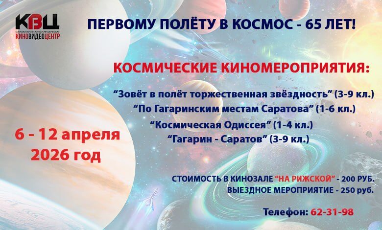 С 6 по 12 апреля в Саратовском областном методическом киновидеоцентре пройдут киномероприятия, посвященные Дню космонавтики.