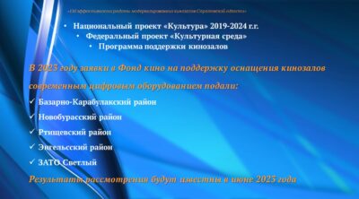 ДОРОЖНАЯ КАРТА муниципальных кинозалов Саратовской области до 2030 года